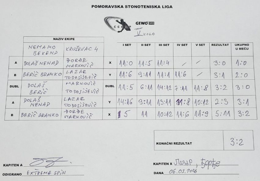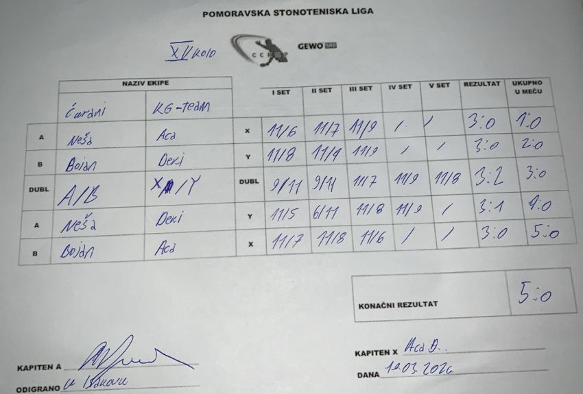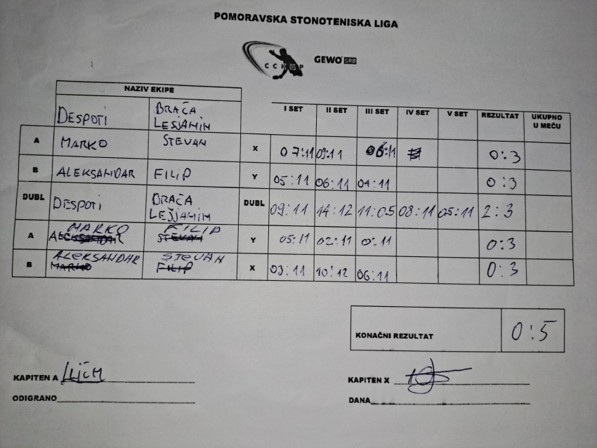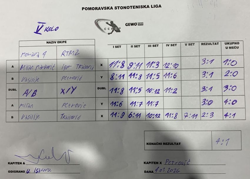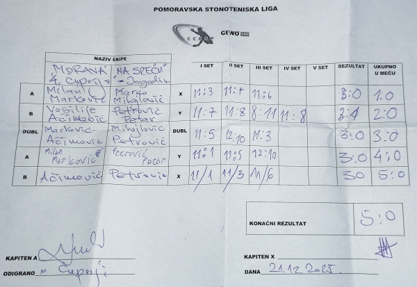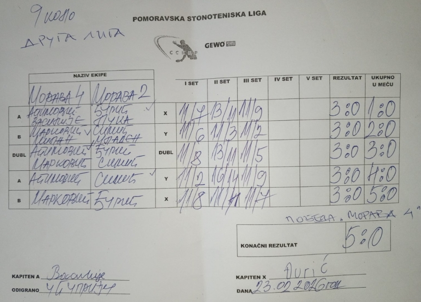 | STK “Morava” (5) | STK "Amateri iz Isakova" (0) | BILTEN |