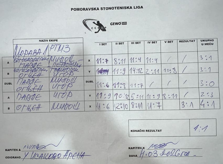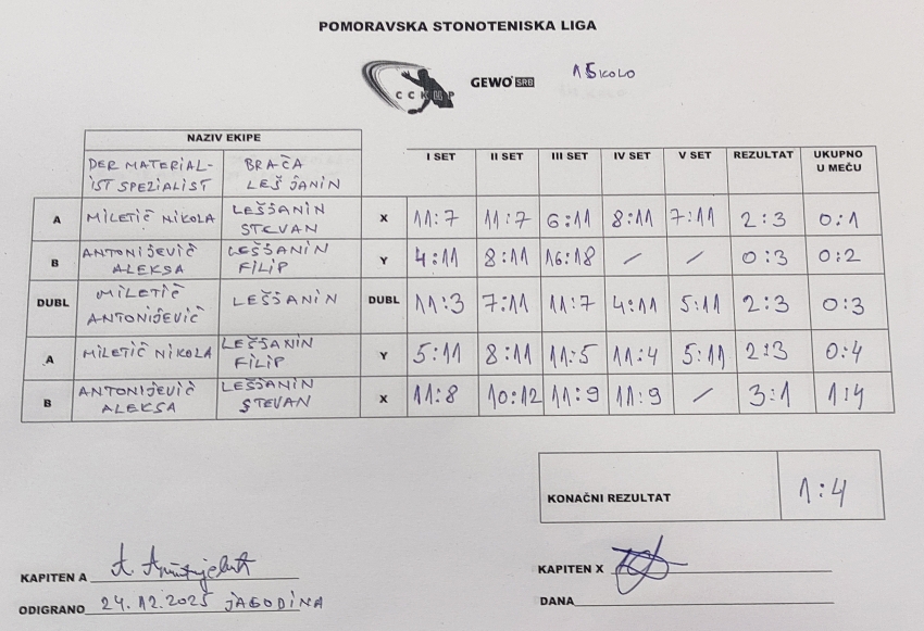 | STK “Morava” (1) | STK "Lešjanin" (4) | BILTEN |