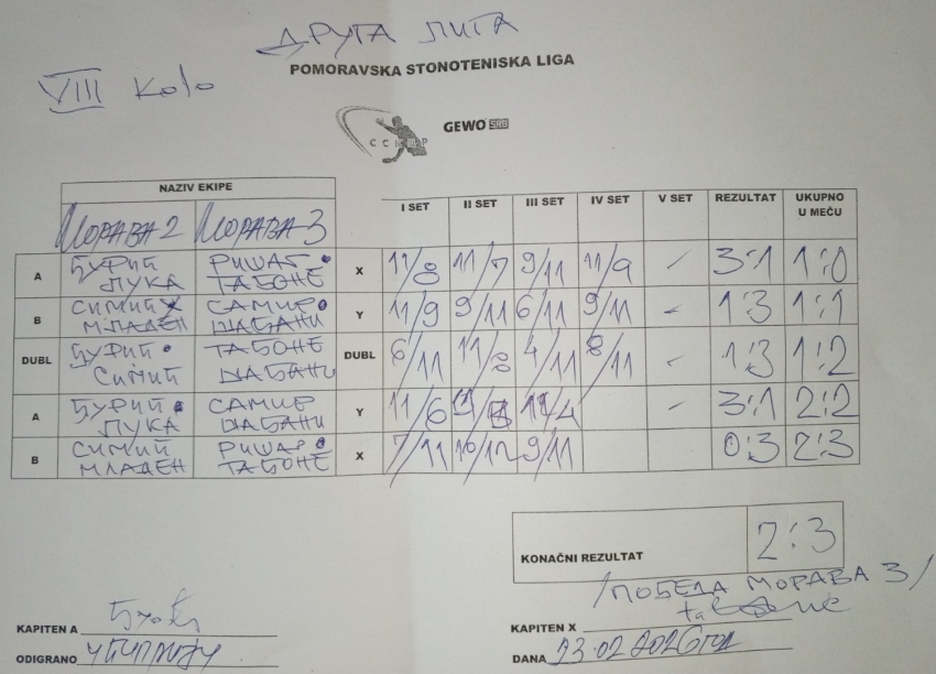 | STK “Morava 2” (0) | STK "Amateri iz Isakova" (5) | BILTEN |