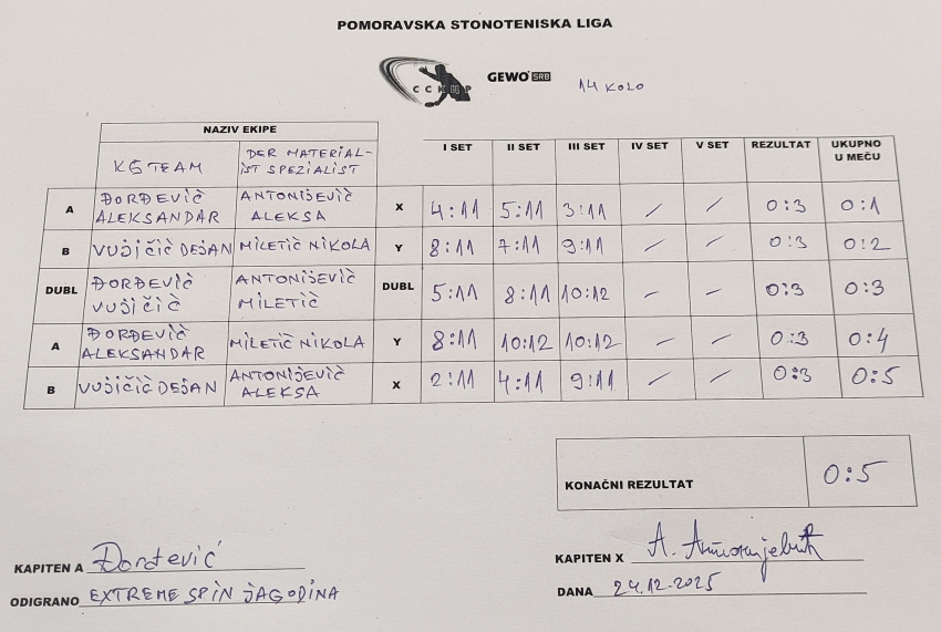 | STK "KG-Team" (5) | STK “Morava 2” (0) | BILTEN |