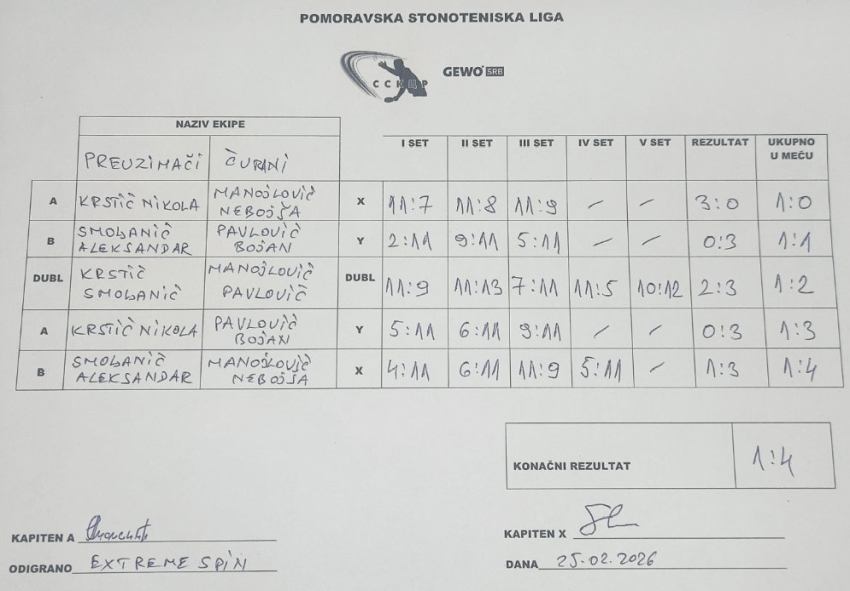 | STK “Extreme Spin” (3) | STK "Ćurani" (2) | BILTEN |