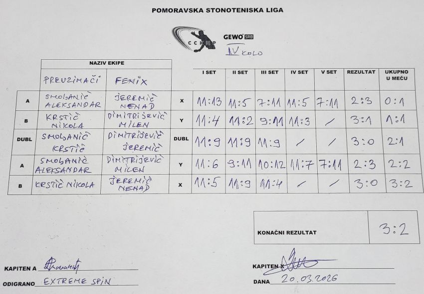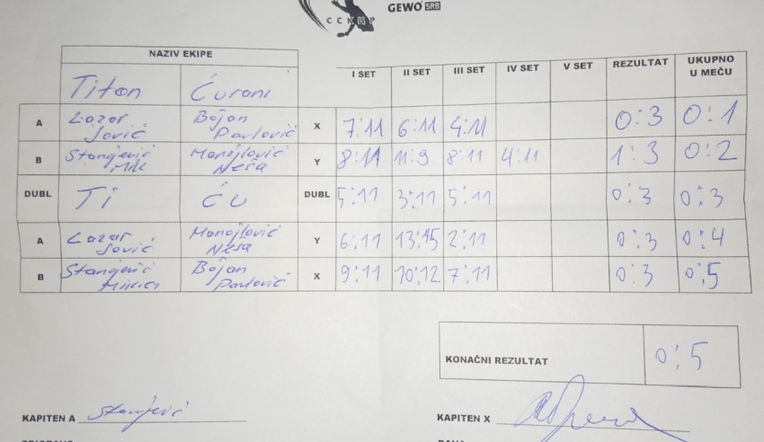 | STK "Ćurani" (3) | STK "Fenix" (2) | BILTEN |