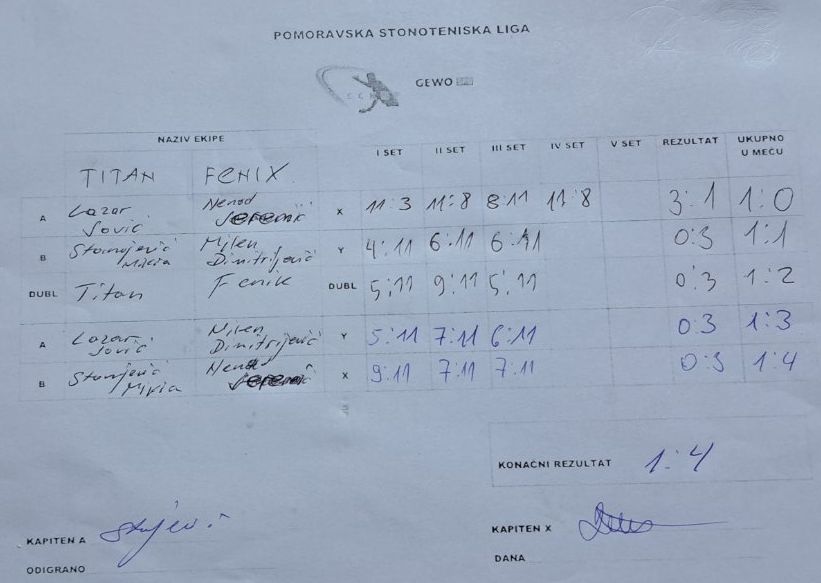 | STK "Lešjanin" (1) | STK "Fenix" (4) | BILTEN |